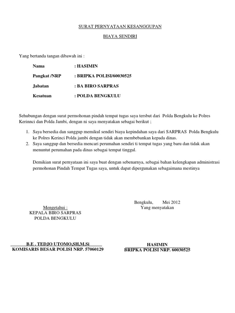 Bersama ini dikirimkan kepada jenderal, surat permohonan pindah dari : (1) surat permohonan ke kapolda ntb. 4) pengusulan mutasi antar polda a) persyaratan / kelengkapan bahan. Merujuk surat keputusan kapolda jabar. Asli surat pernyataan siap ditempatkan dimana saja, tidak menuntut jabatan dan bersedia mengabdi di kota depok minimal 3 tahun setelah diterima di kota depok;.